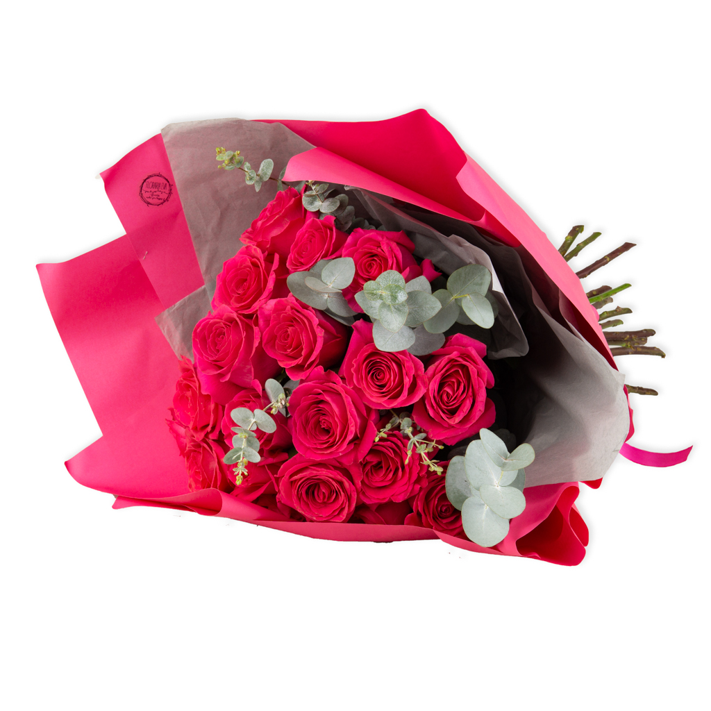 Aranjamentul buchetului de 19 trandafiri pink cu ramuri de Eucalypt reuşeşte să înglobeze toate emoţiile bune, entuziasmul, iubirea, gingăşia, frumuseţea absolută. Oferit în dar, transmite persoanei care îl primeşte prin magia cu care a crescut, sentimente de iubire, recunoştinţă, apreciere.