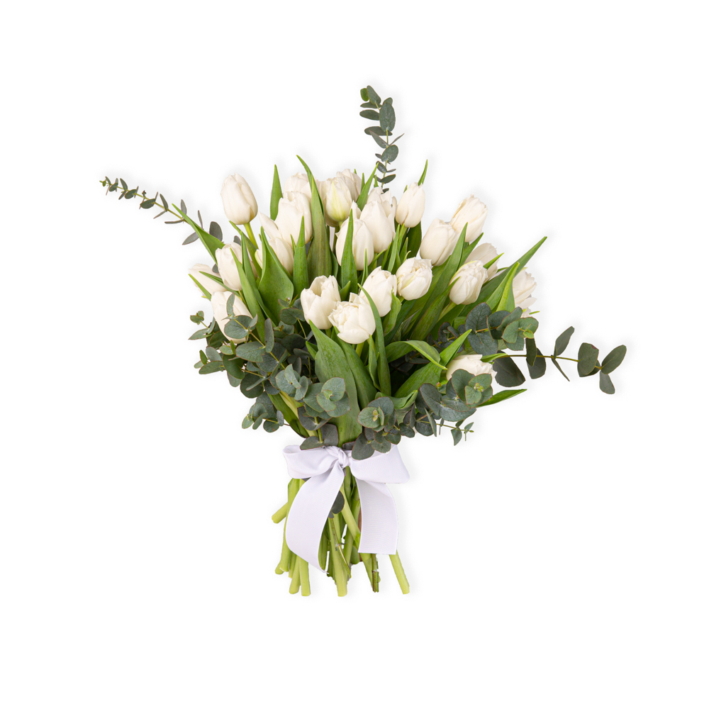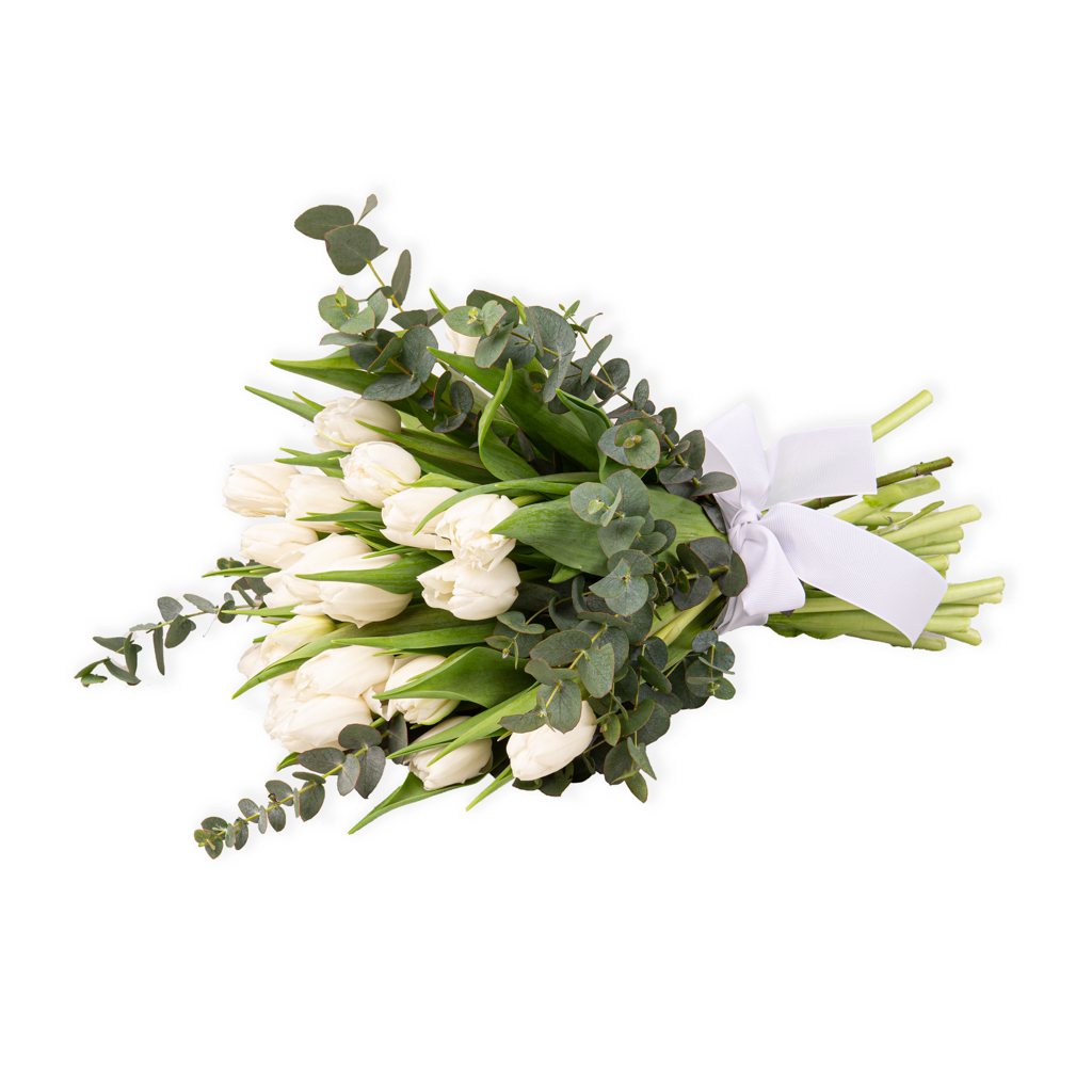 Buchet 25 lalele albe fara ambalaj