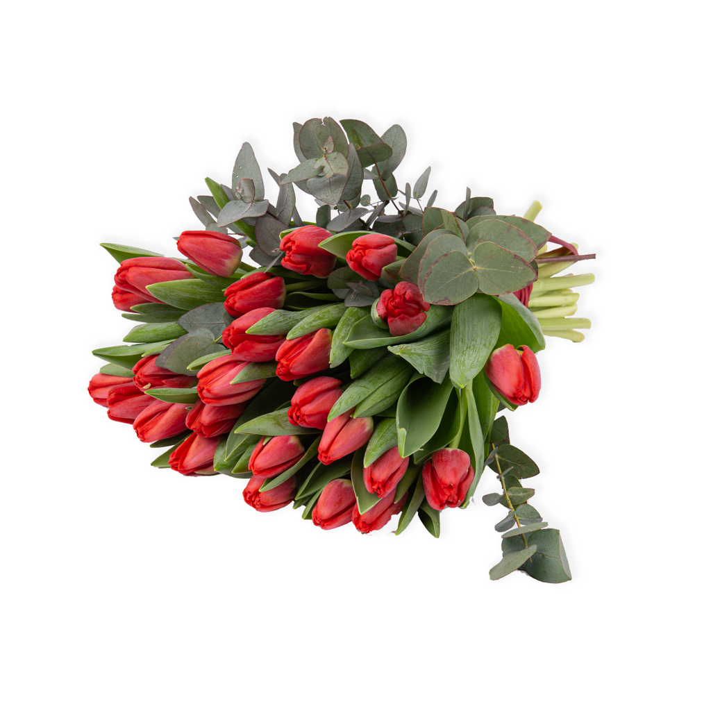 Buchet 25 lalele rosii fără ambalaj