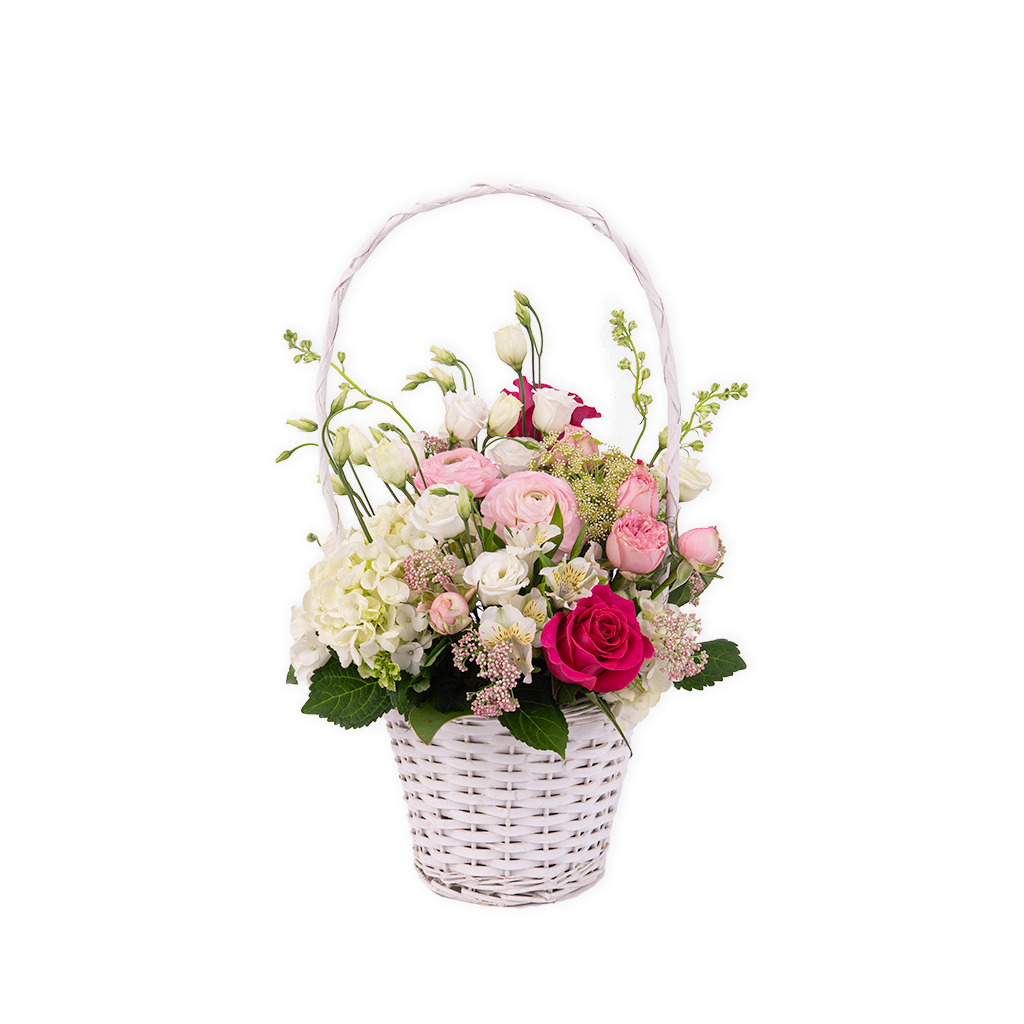 Aranjat cu stil şi profesionalism în cadrul Florăriei Eva. Coșul este unul elegant, încântător şi finisat cu multă grijă, reprezentând cea mai bună modalitate, poate chiar cea mai frumoasă, de a ne împărtăşi sentimentele.